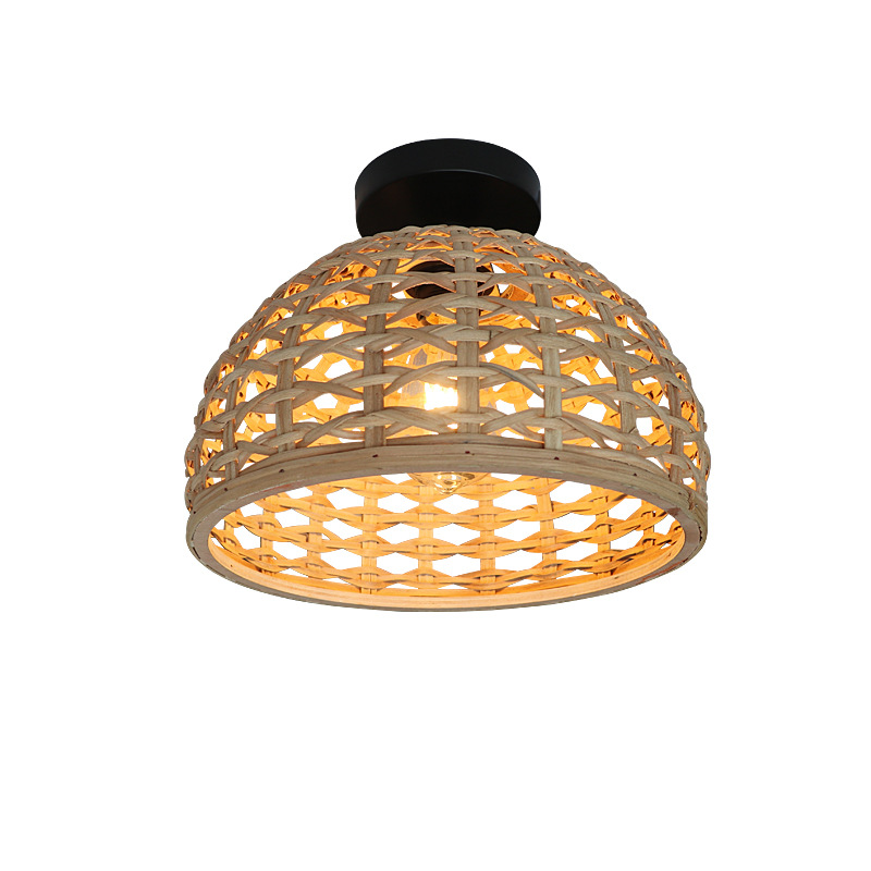 Japanese Rattan Semi Flush Mount Ceiling Light Wabi-sabi 1-Light Bowl Shaped Ceiling Lamp BBR300