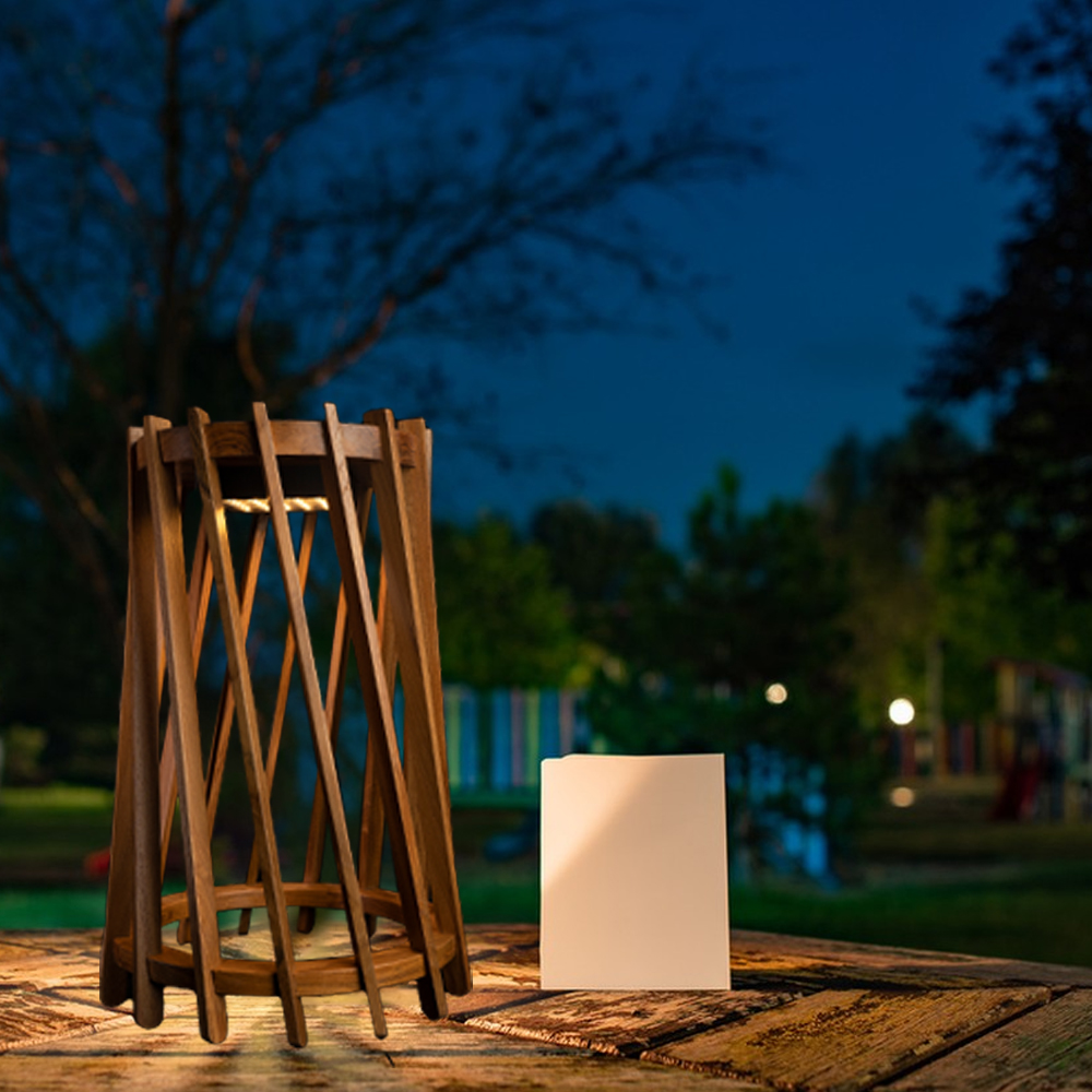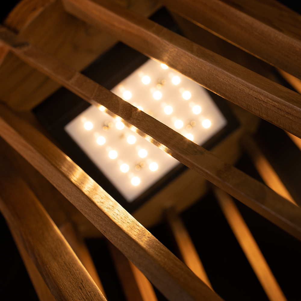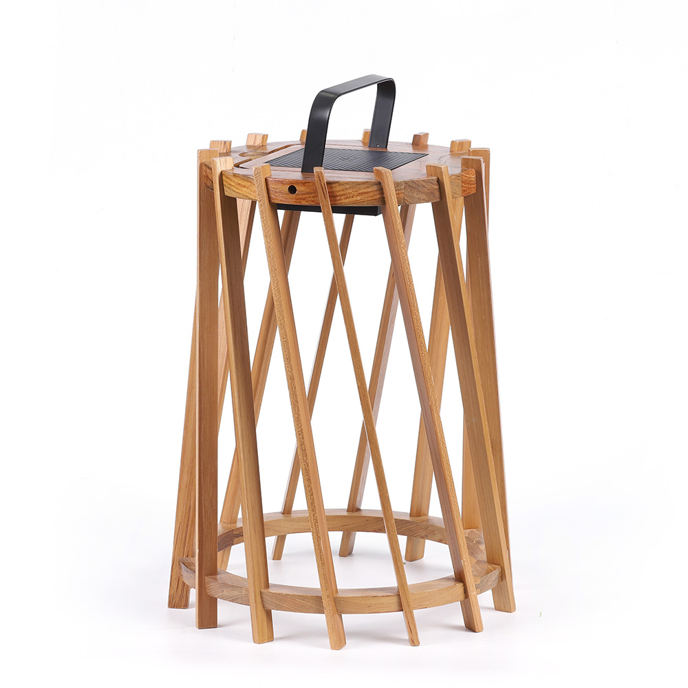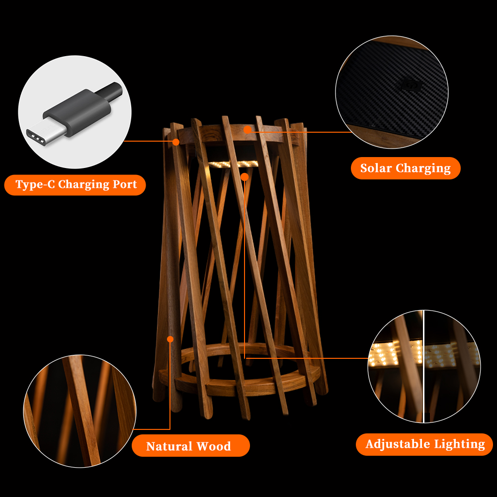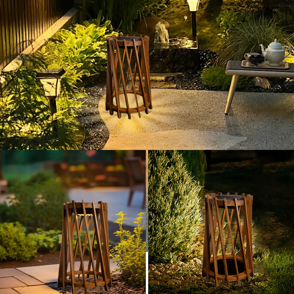 Outdoor Lighting Garden Backyard Solar Powered LED Hanging Lantern Weather Resistant Wooden frame Nature Style Deco Lamp