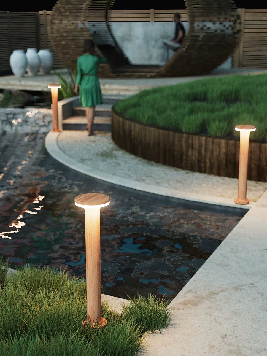 New Outdoor Waterproof LED Garden Light 300/600/800mm High Wood Grain Decorative Lawn Light with Aluminum Alloy Body IP65 Rated