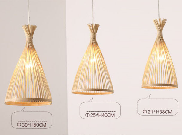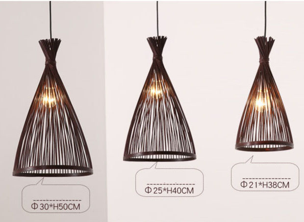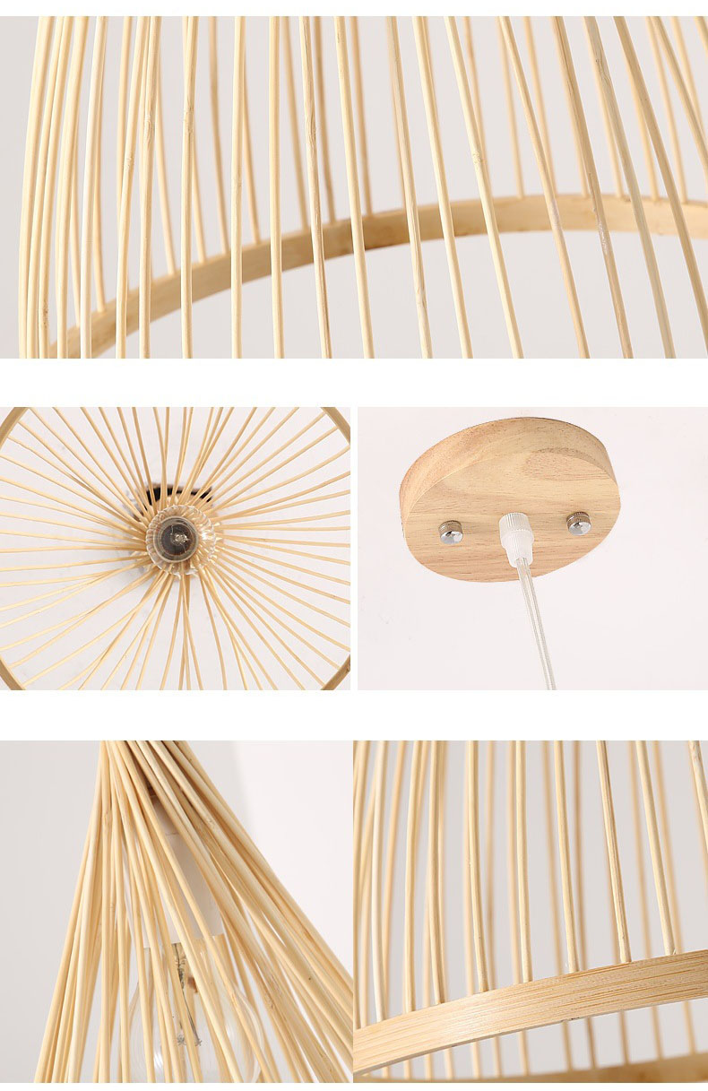 Indoor LED Simple Bamboo Weaving Light Classic Woven Chandelier hanging lamp with E27 Rattan lampbase