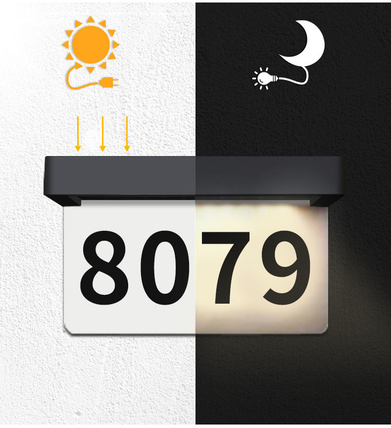 LED Number Solar Light Address Sign Wall Light Waterproof Home Plate House Number Lamp DPL190
