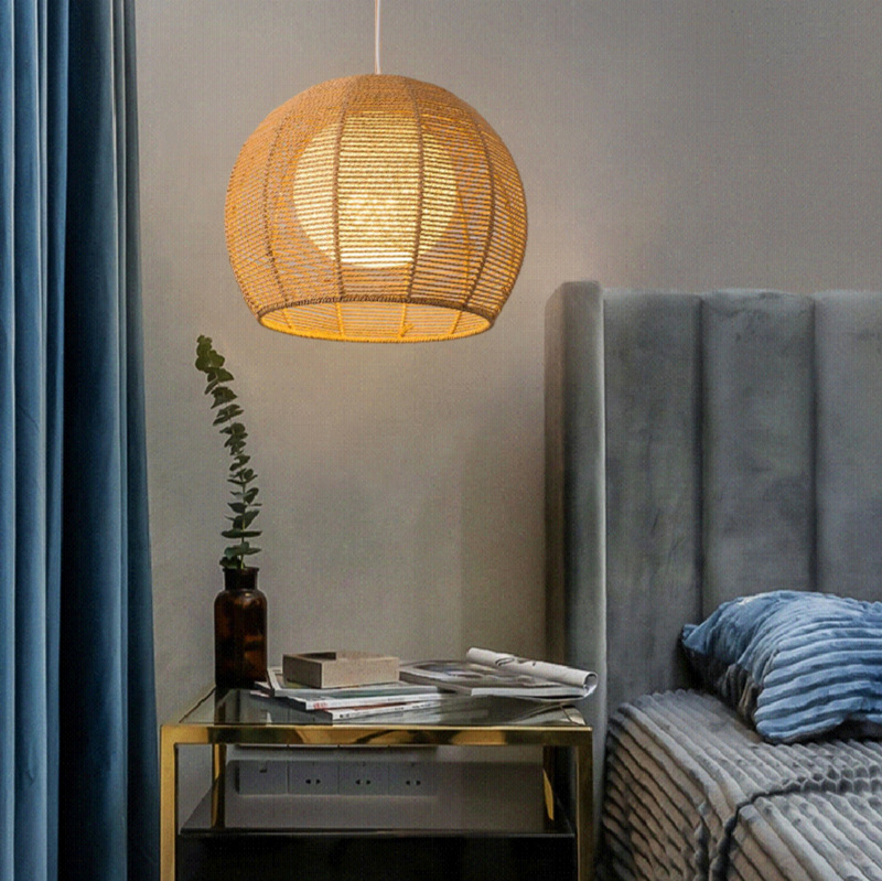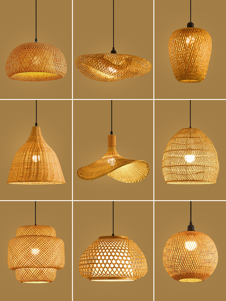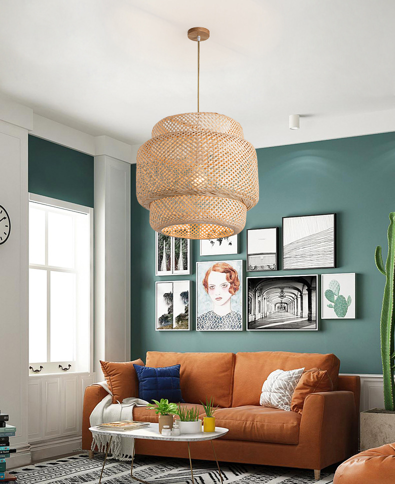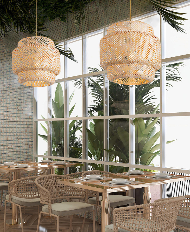 America Rustic Handmade Rattan Ceiling Hanging Pendant Lamp Bamboo Lamp Shade Light Fixtures for Living Room Hotel Restaurant
