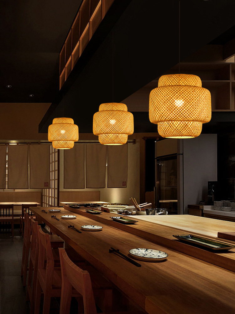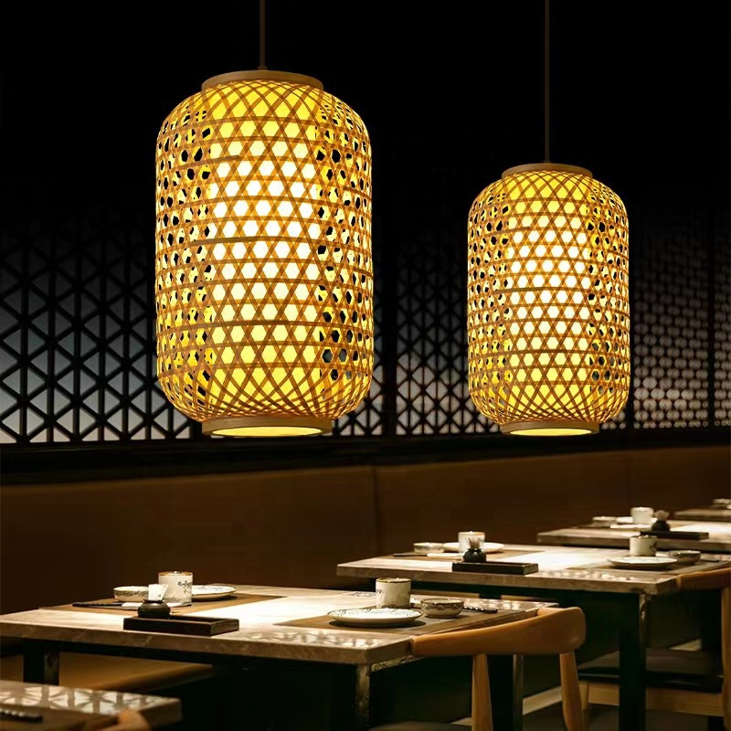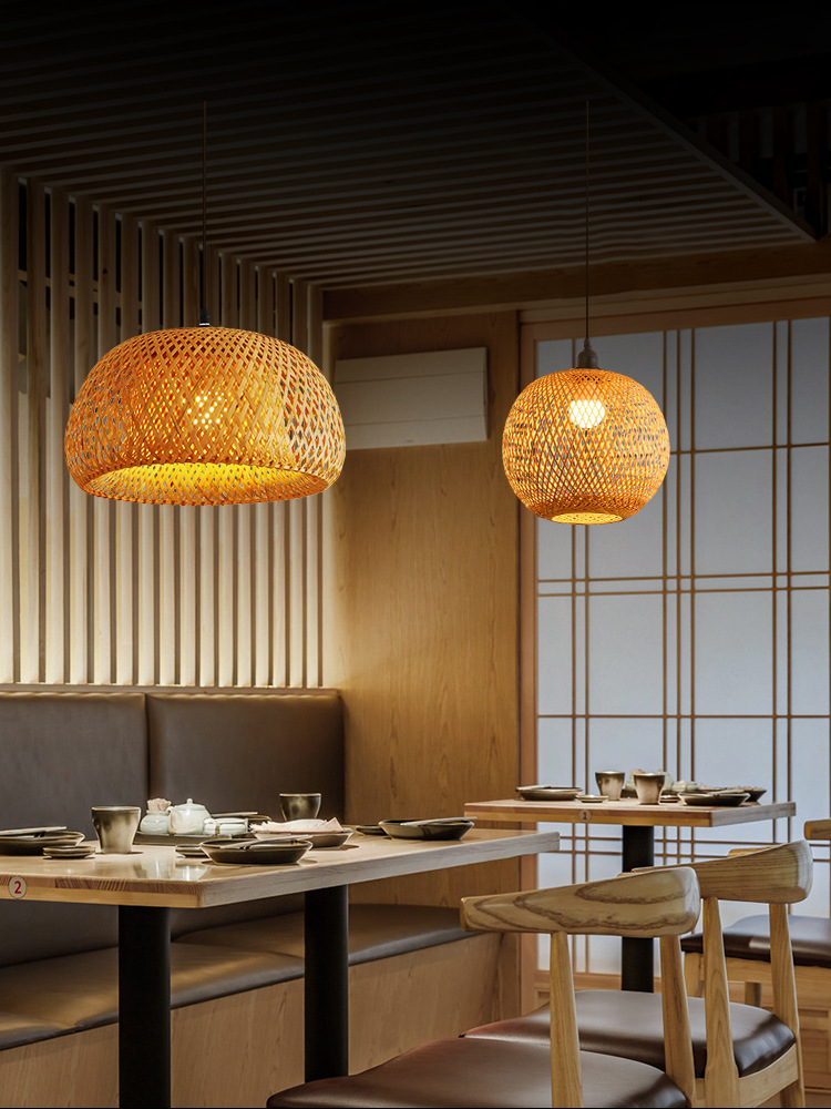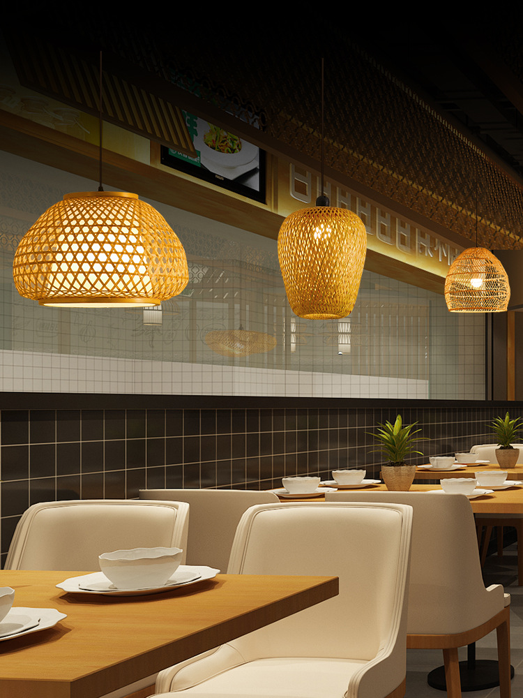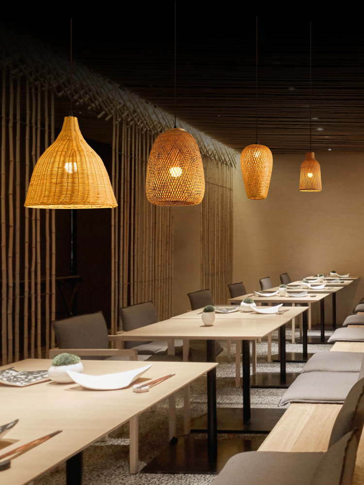 America Rustic Handmade Rattan Ceiling Hanging Pendant Lamp Bamboo Lamp Shade Light Fixtures for Living Room Hotel Restaurant