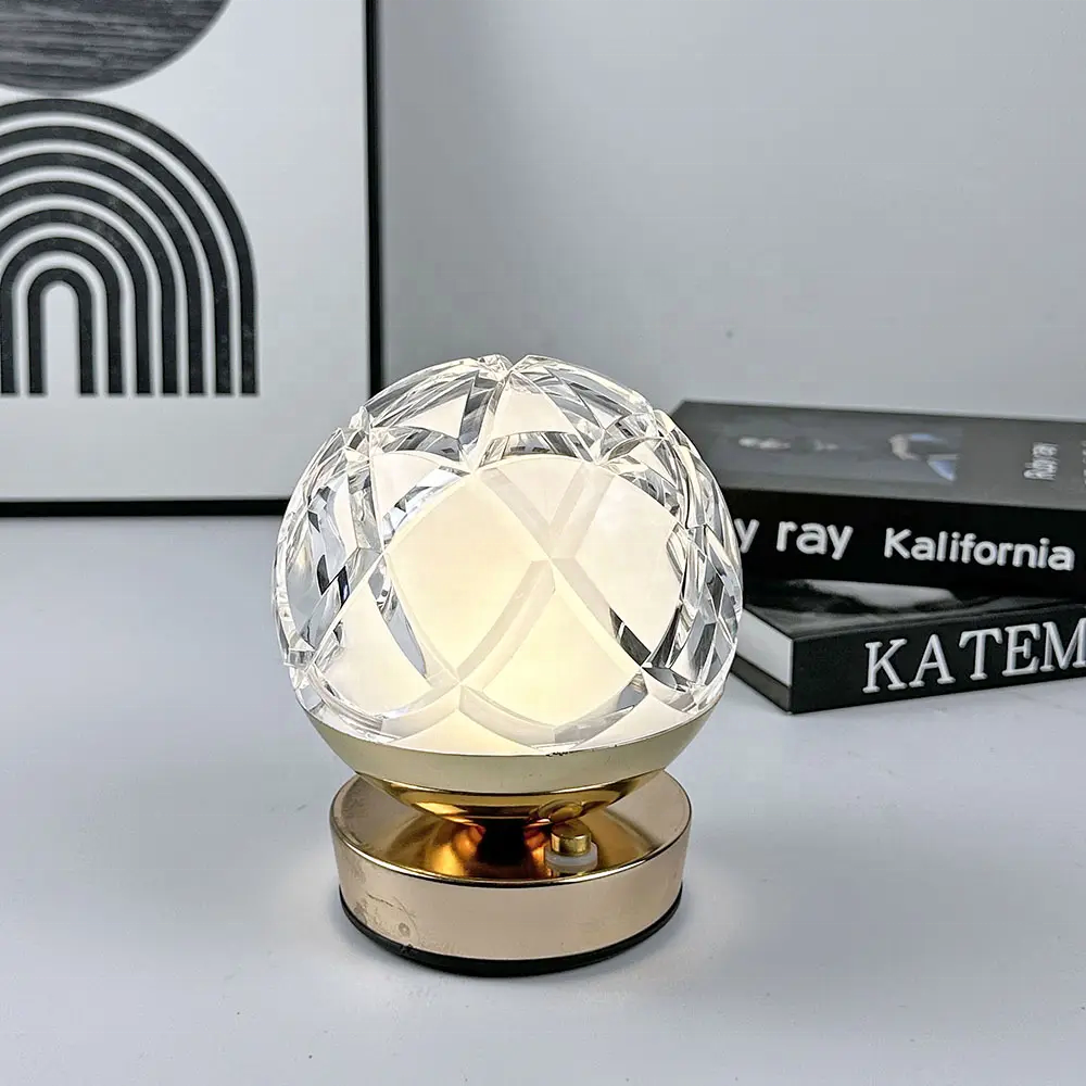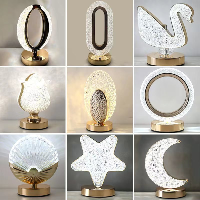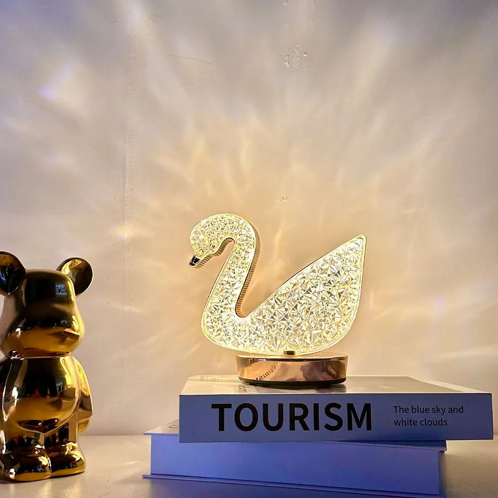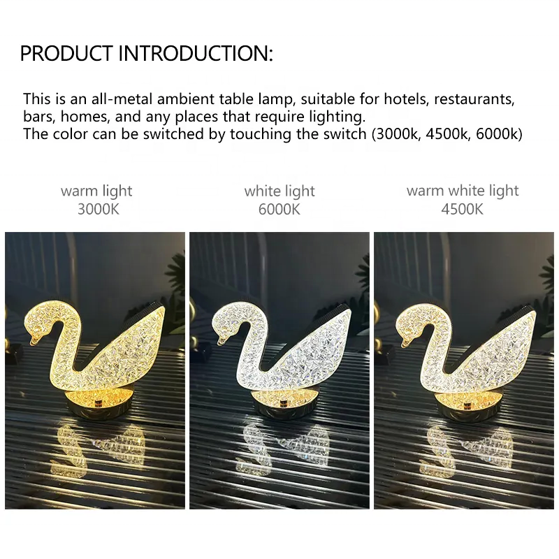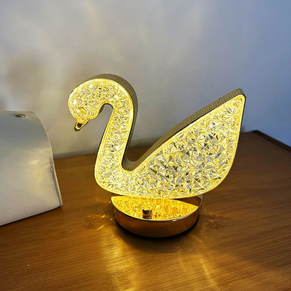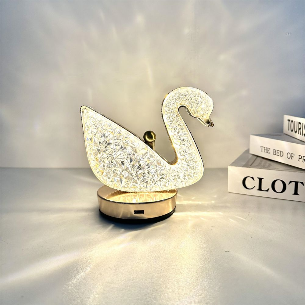 Modern Restaurant Bedroom Study Light Table Lamp Rechargeable Mini Touch Crystal Swan Waist Football LED Night Light Desk Lamp