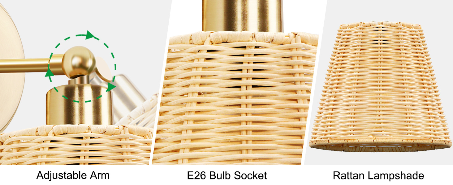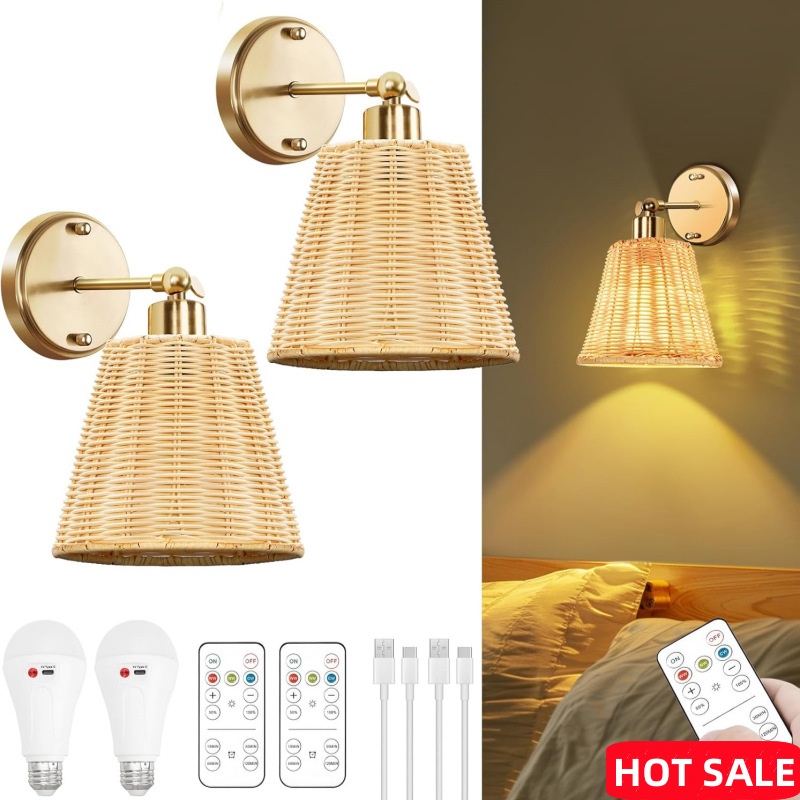 Retro Woven for Kitchen Dining & Living Room Free Charging Wiring Bamboo Wall Lamp BBR240