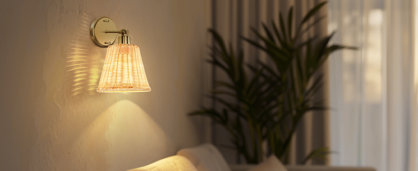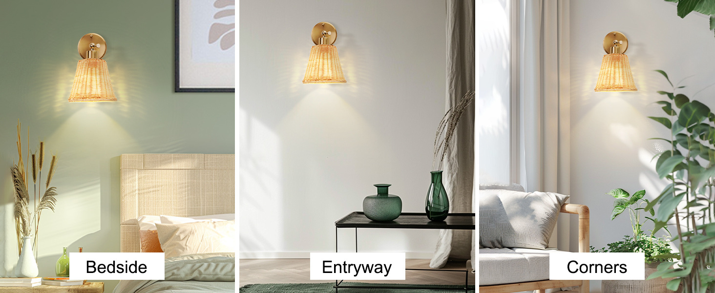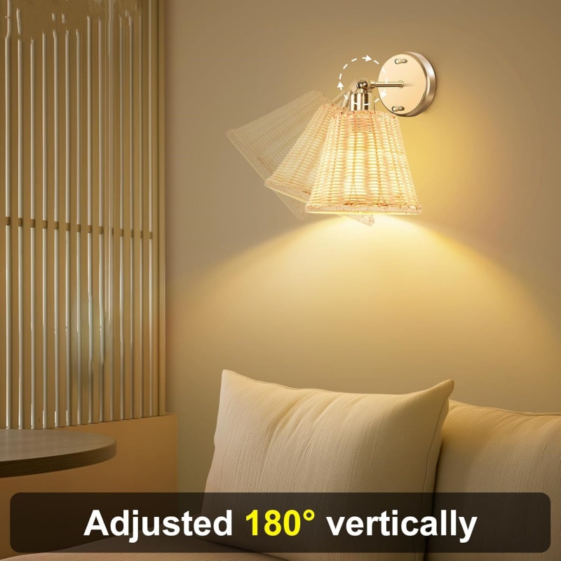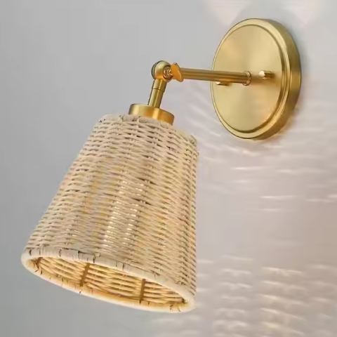 Retro Woven Bamboo Wall Lamp for Kitchen Dining & Living Room Free Charging Wiring Wall Lamp