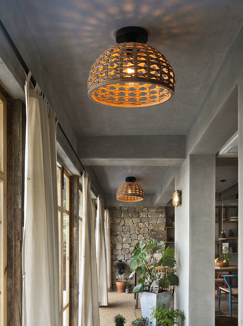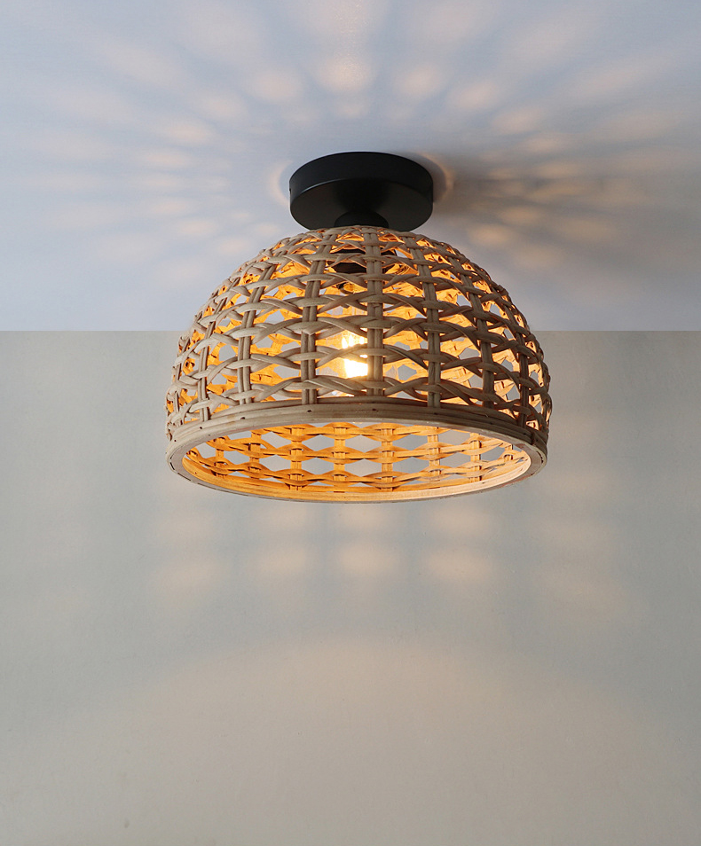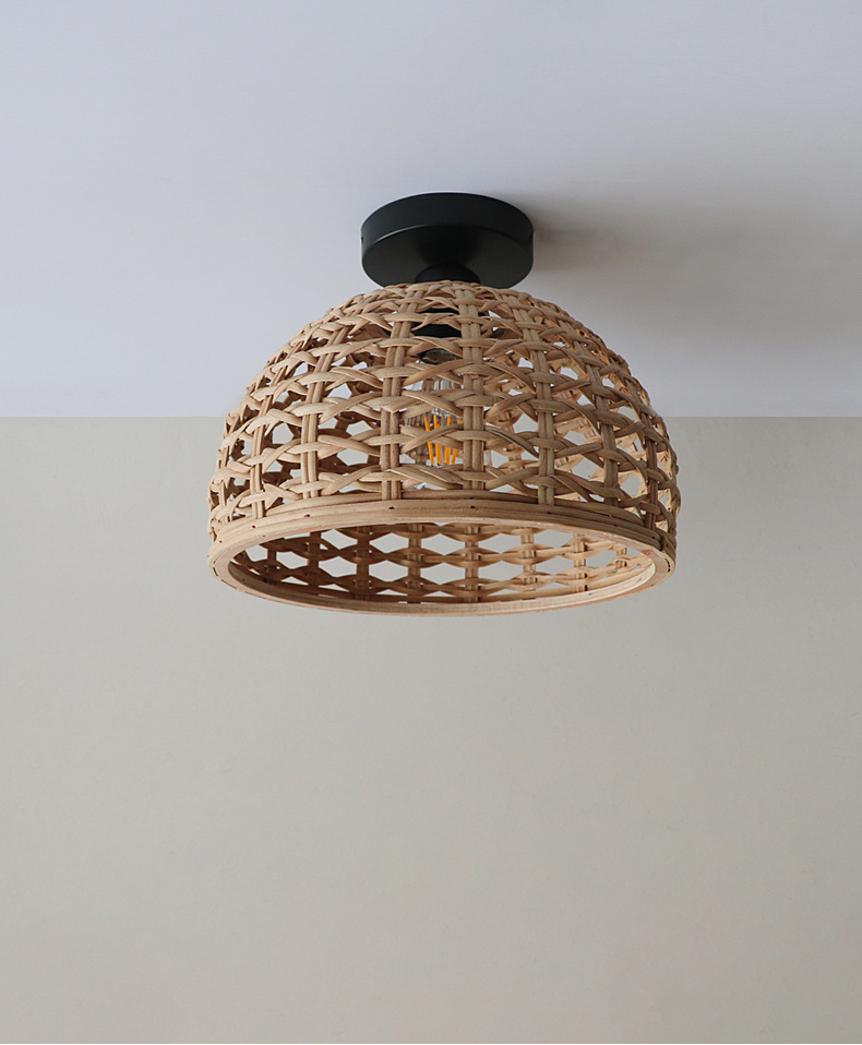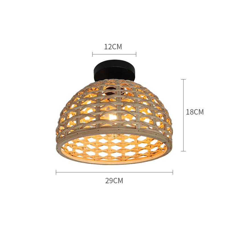 Japanese Rattan Semi Flush Mount Ceiling Light Wabi-sabi 1-Light Bowl Shaped Ceiling Lamp BBR300