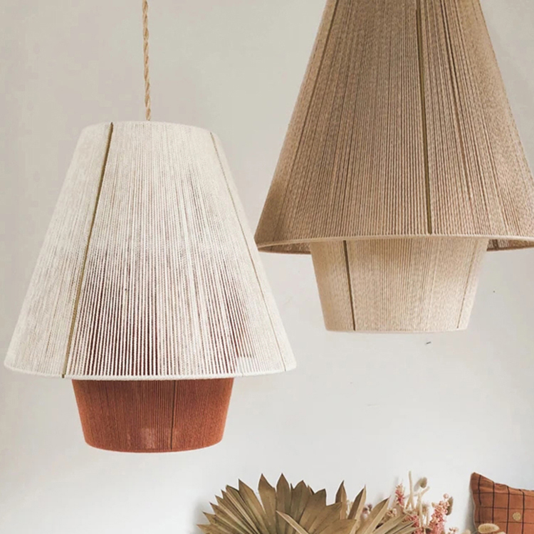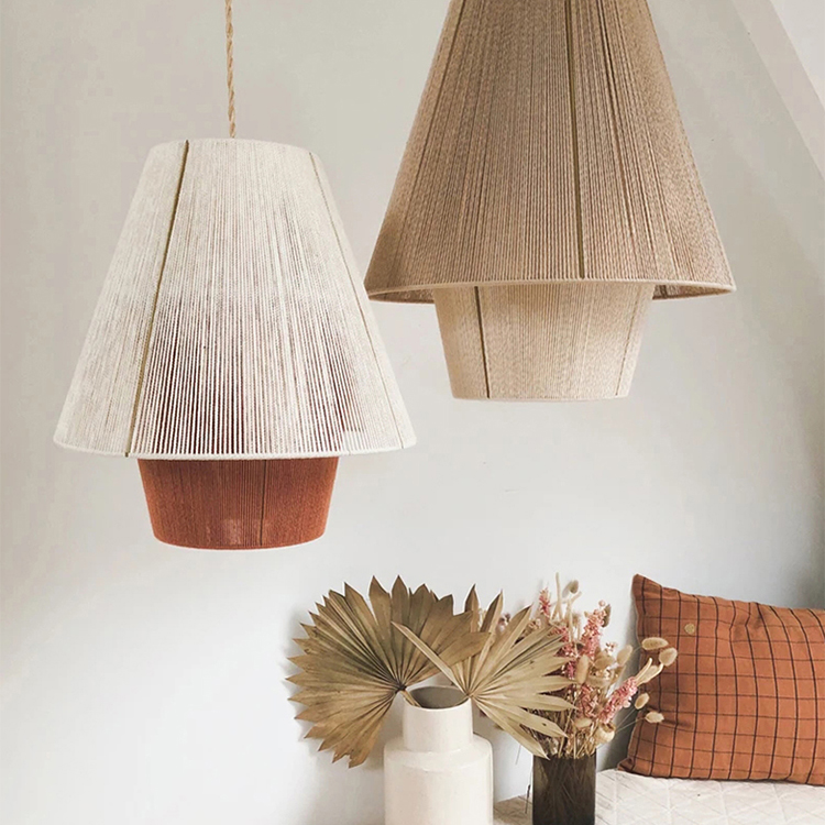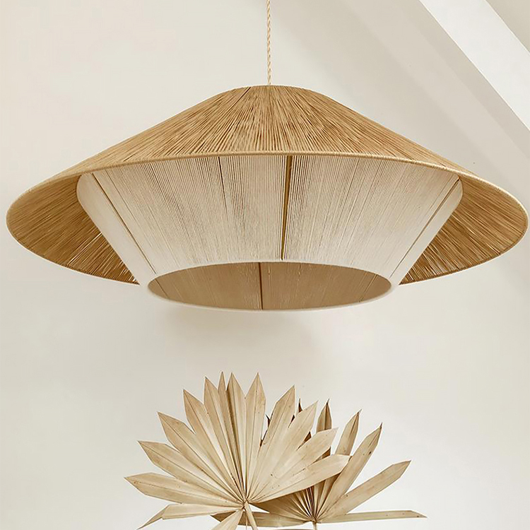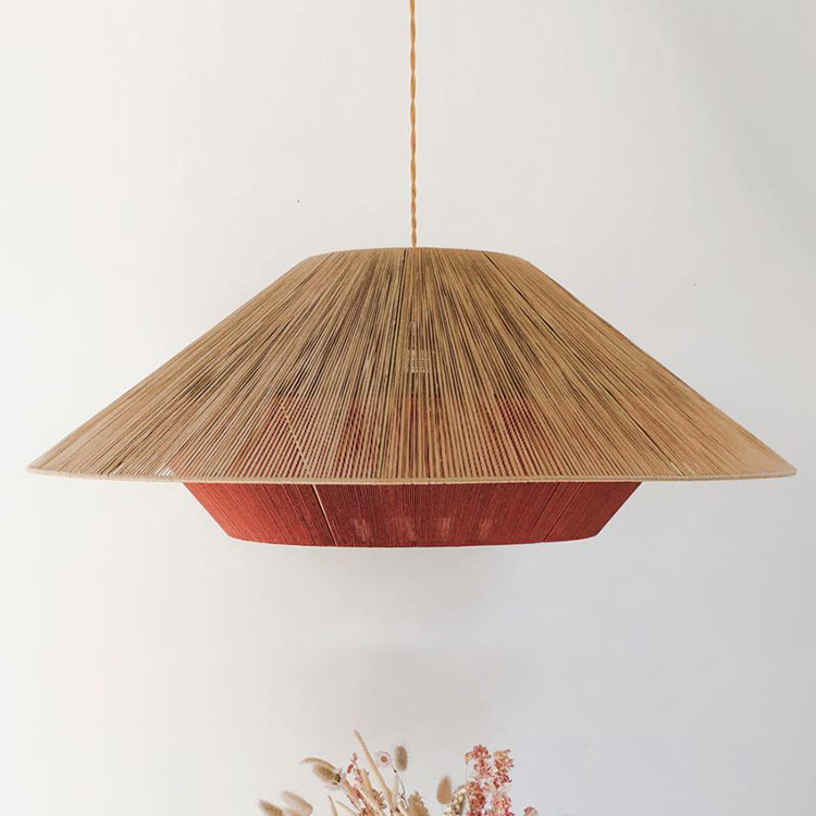 Indoor Handmade Wicker Hanging Lamps Farmhouse Design Rattan Pendant Light Hat Shaped
