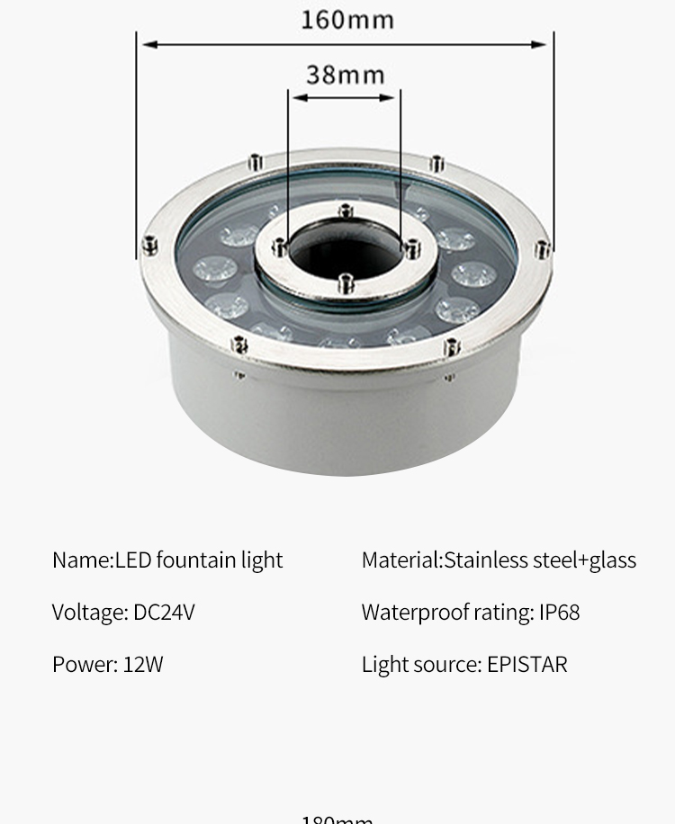 12W DMX512 RGB RGBW Full Color Changing Stainless Steel Fountain Light UW1740