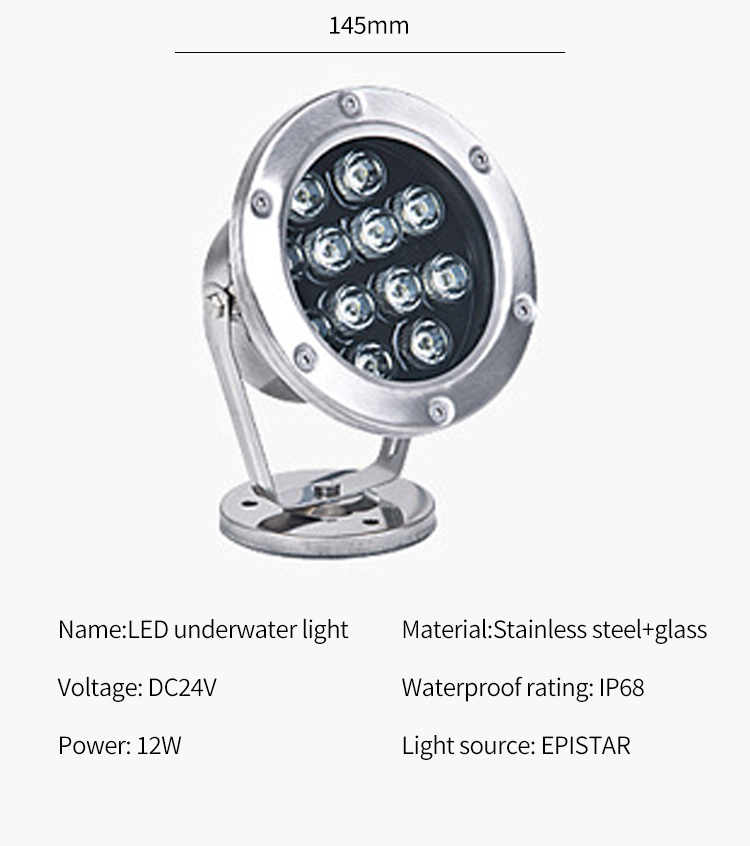 12W DMX512 RGB RGBW Full Color Changing Stainless Steel Fountain Waterfall Swimming Pool Waterproof LED Underwater Lights CRI 80