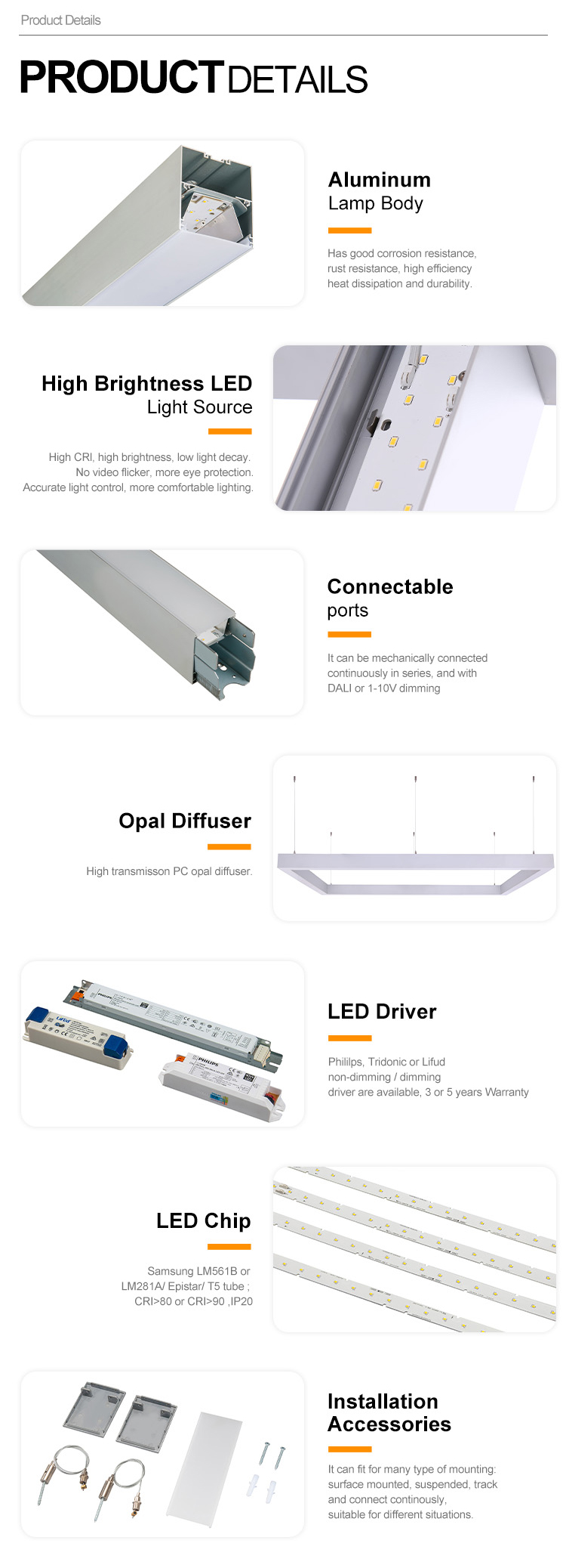 Office and School Shopping Mall LED Linear Tube Hanging Linear Luminaire Lamp LNL530