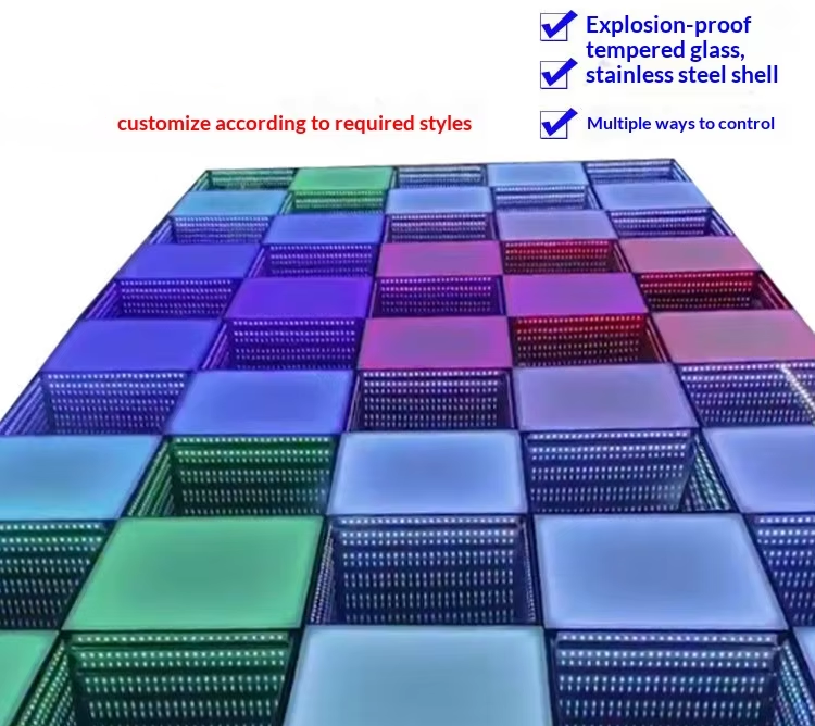 LED Abyss Floor Tile Light 3D Thousand-Layer Stainless Steel Mirror Panel Stage Customized Induction Lighting IP65 Dual Color