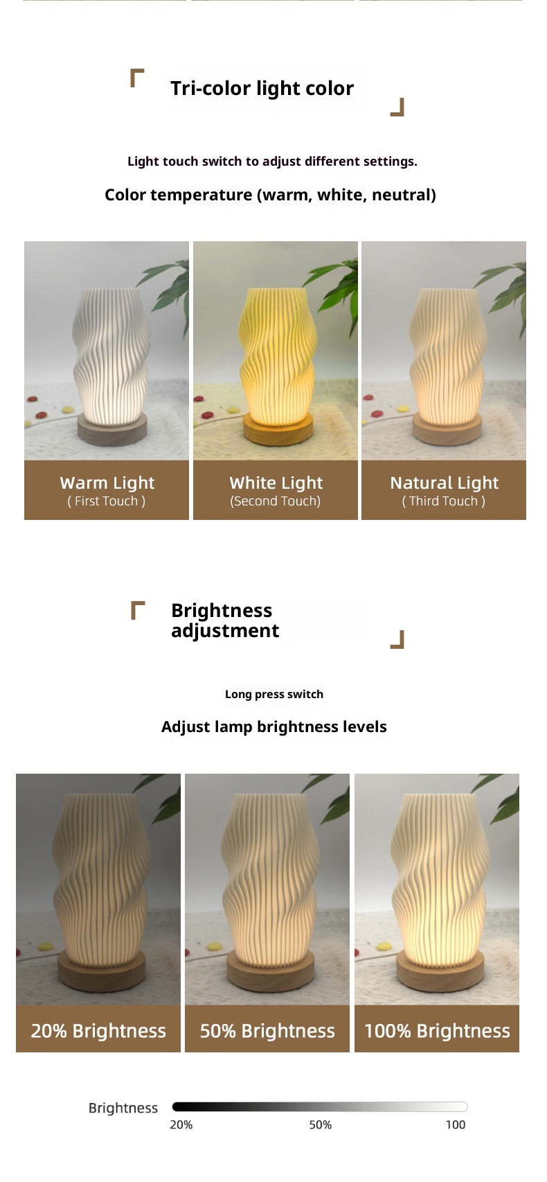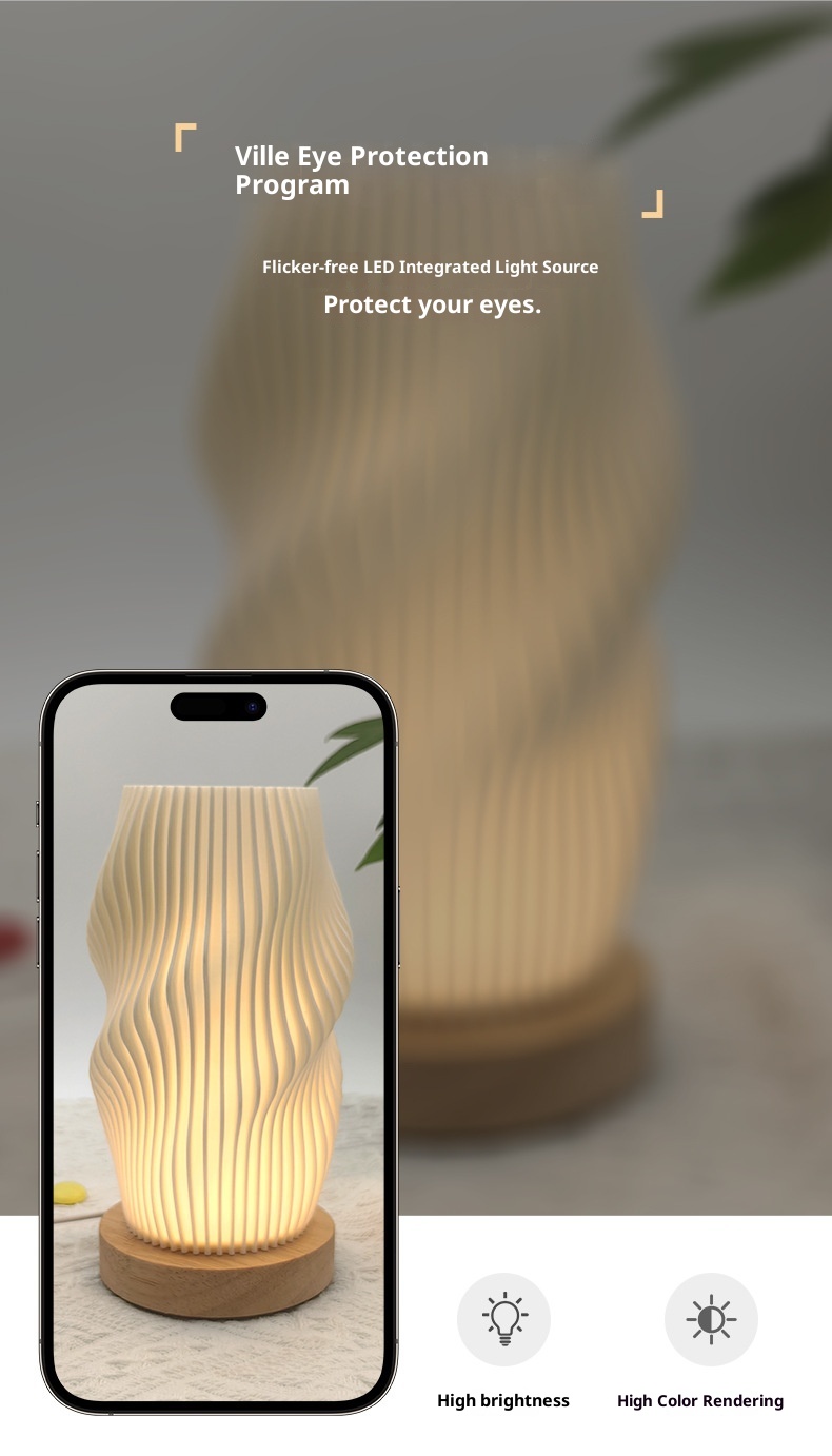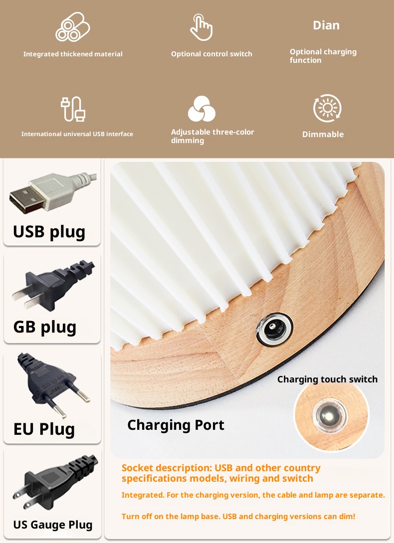 Nordic Art Living Room Bedside Decorative Battery LED Wooden Table Lamp Ornaments Eye Protection Nightlight Rechargeable
