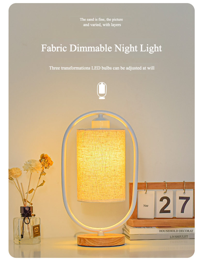 Nordic Retro Modern E14 Nightlight Table Lamp Simple Personality Creative New Chinese Fabric Bedside Solid Wood for Bedroom