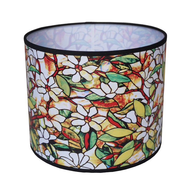 Handmade Round Hard Back Eco-Friendly Modern Design Indoor PVC Lamp Shade with Cylinder Flower Printing Powder-Coated Finish