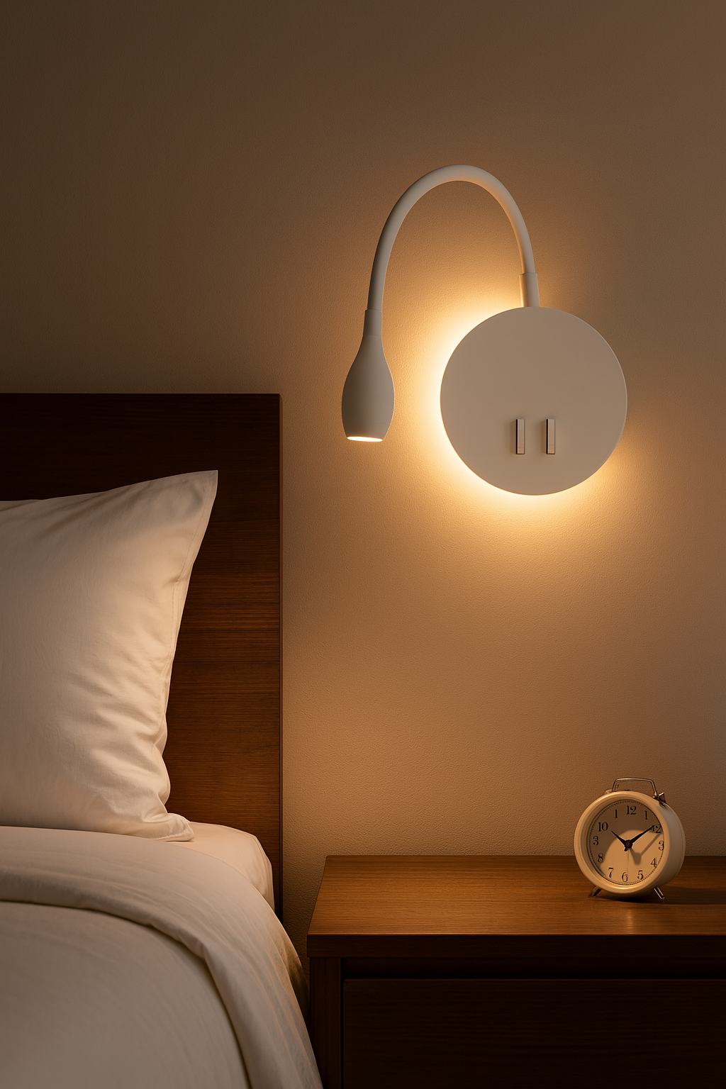 85-265V Hotel Bedside LED Reading Light, Dual-Switch Gooseneck Wall Sconce with Bottom Ambient Light (White)