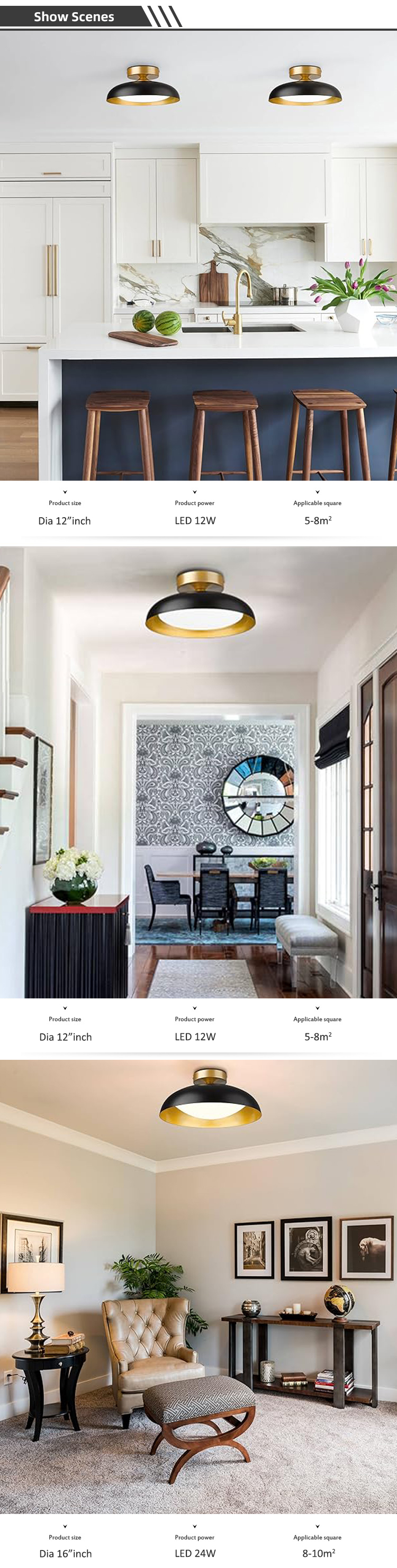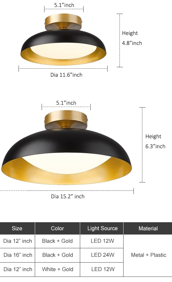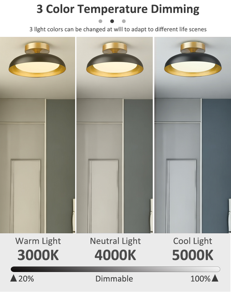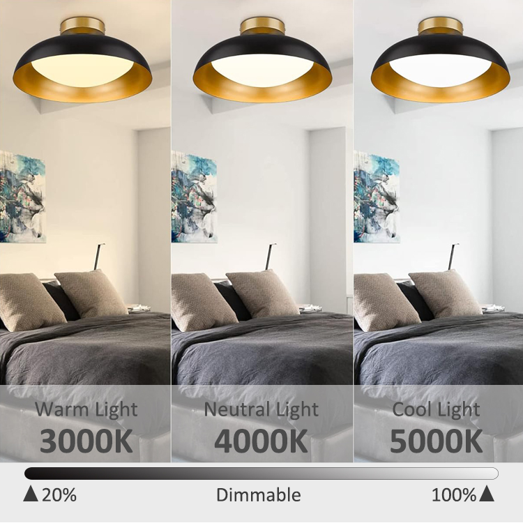 Modern Black Indoor Flush Mounted 3CCT Dimming Remote 12W Ceiling Light CL1200