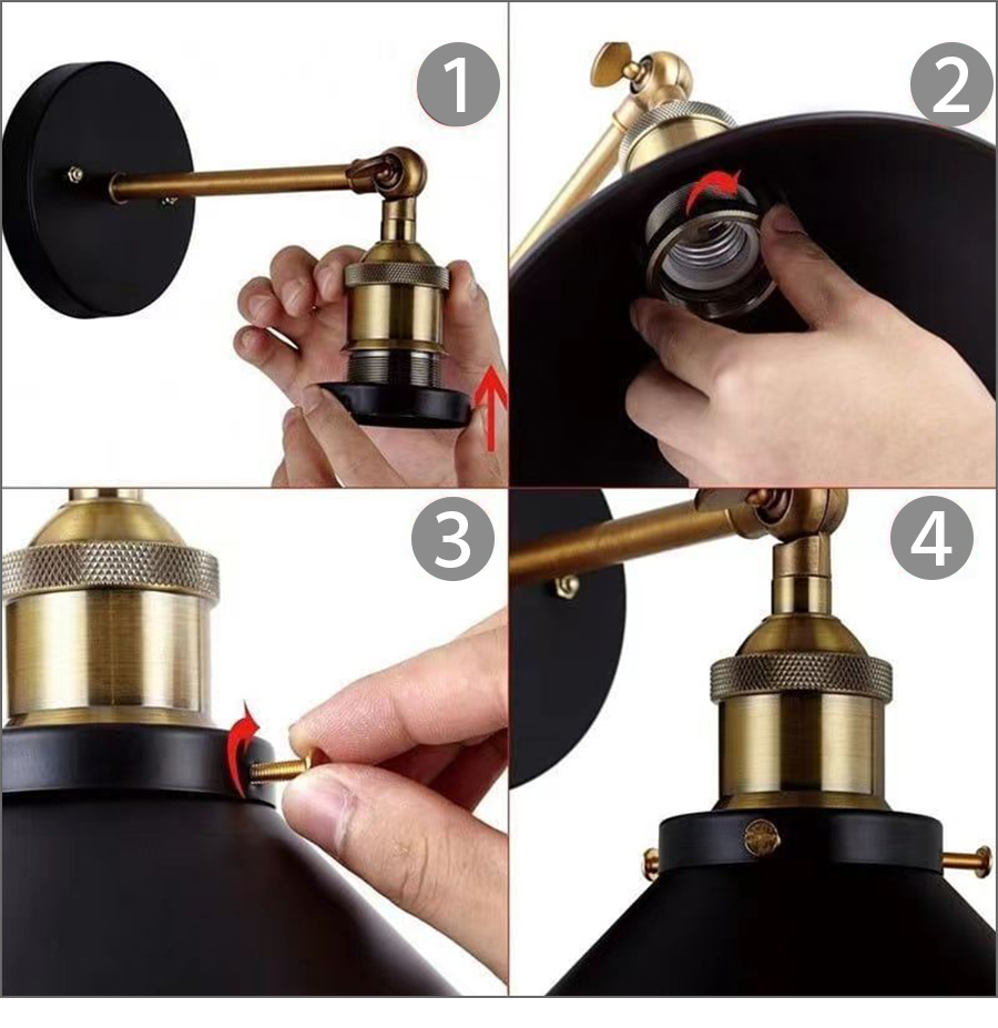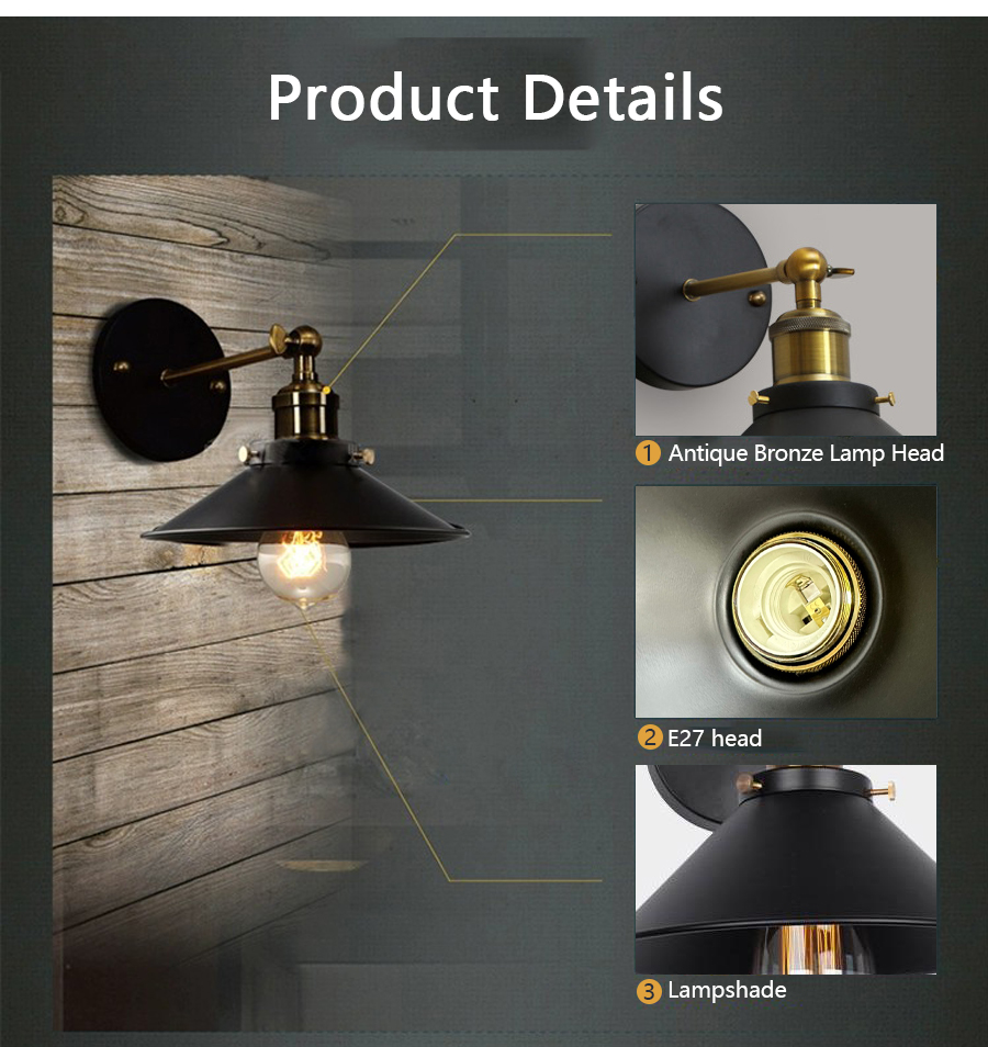 Nordic Retro Indoor Wall Lamps Simple Industrial Style High-Class American LED E27 Durable Iron Bulb base for Modern Living Room