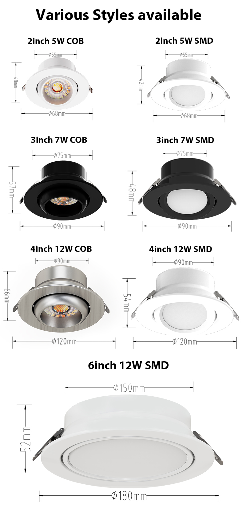 Office Home Hotel Ceiling Recessed Adjustable COB 5W 7W 12W LED Downlight DL2170