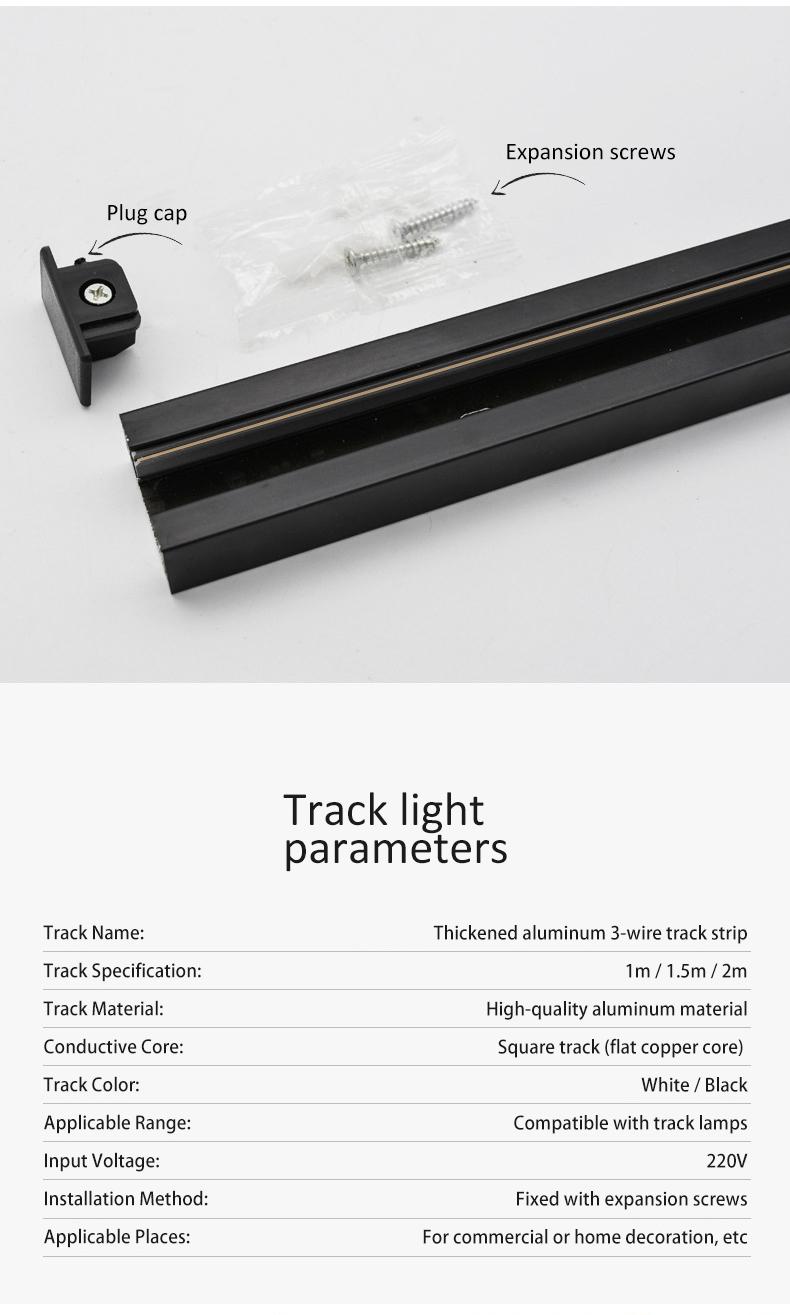 Modern Aluminum 2/3/4 Line Length 1.5m/1m/2m White & Black track rail bar TBS800