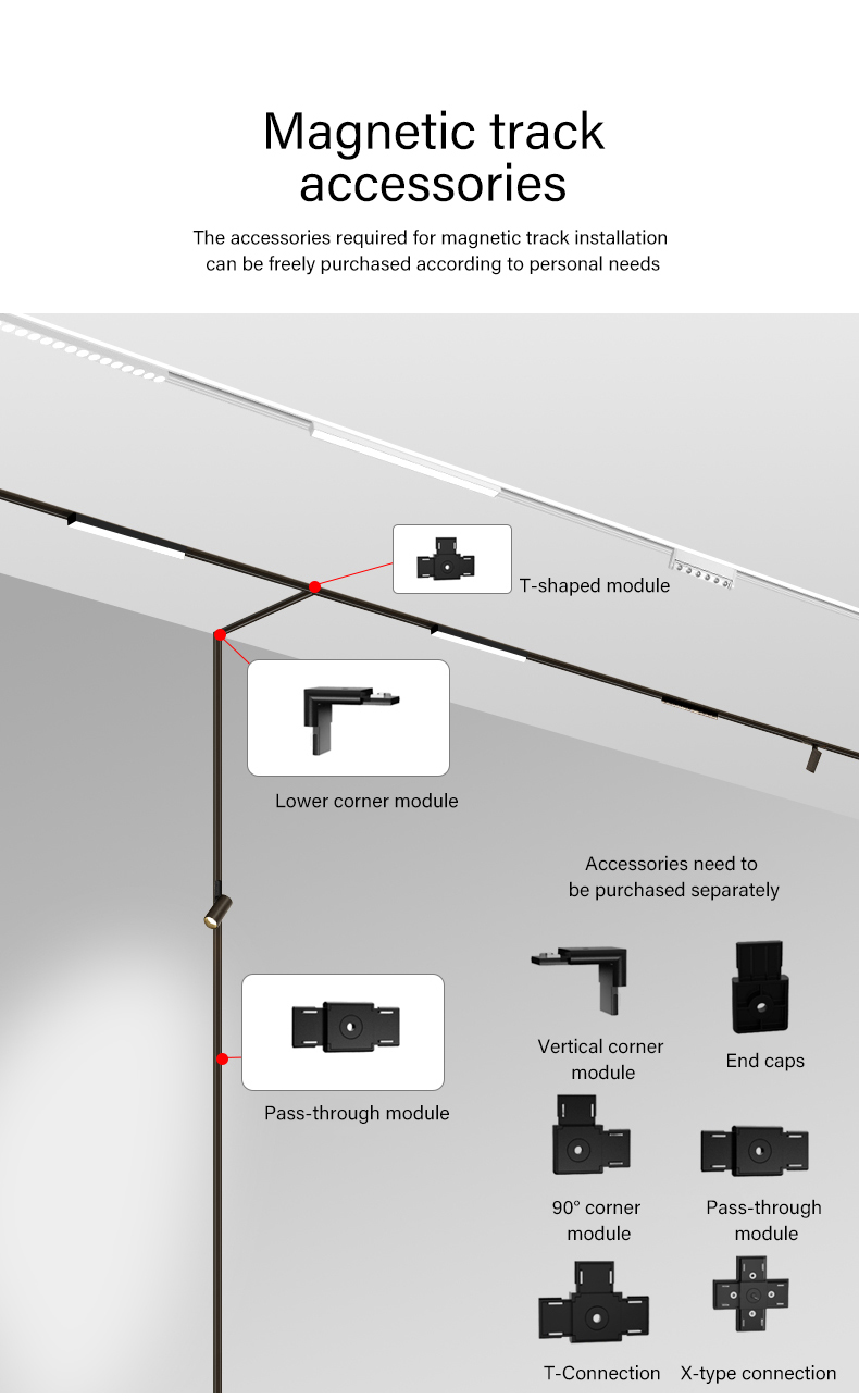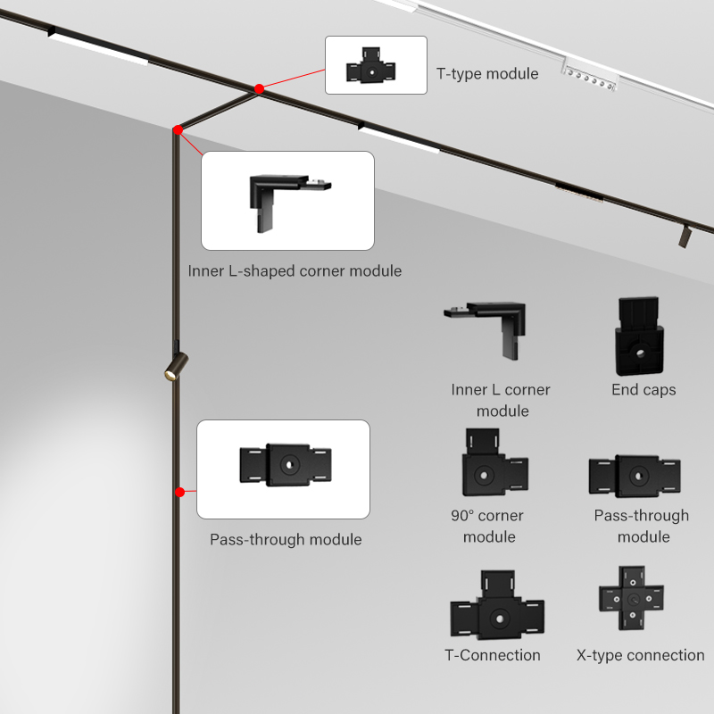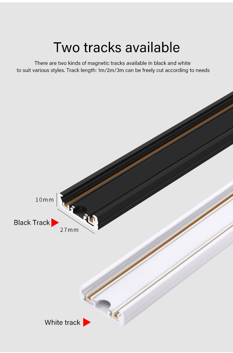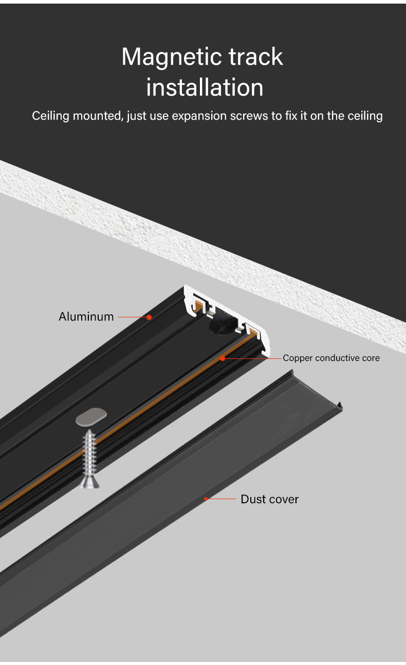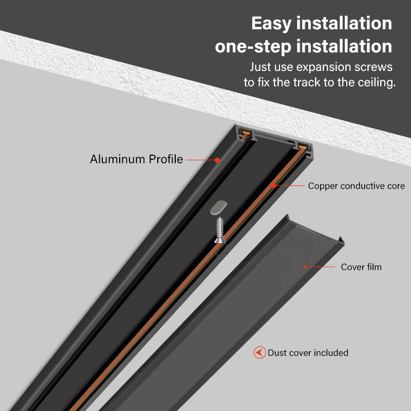Ultra-Thin Black & White Aluminum Light Rail Easy & Quick LED Ceiling Surface Embedded Track Installation with Magnetic Track