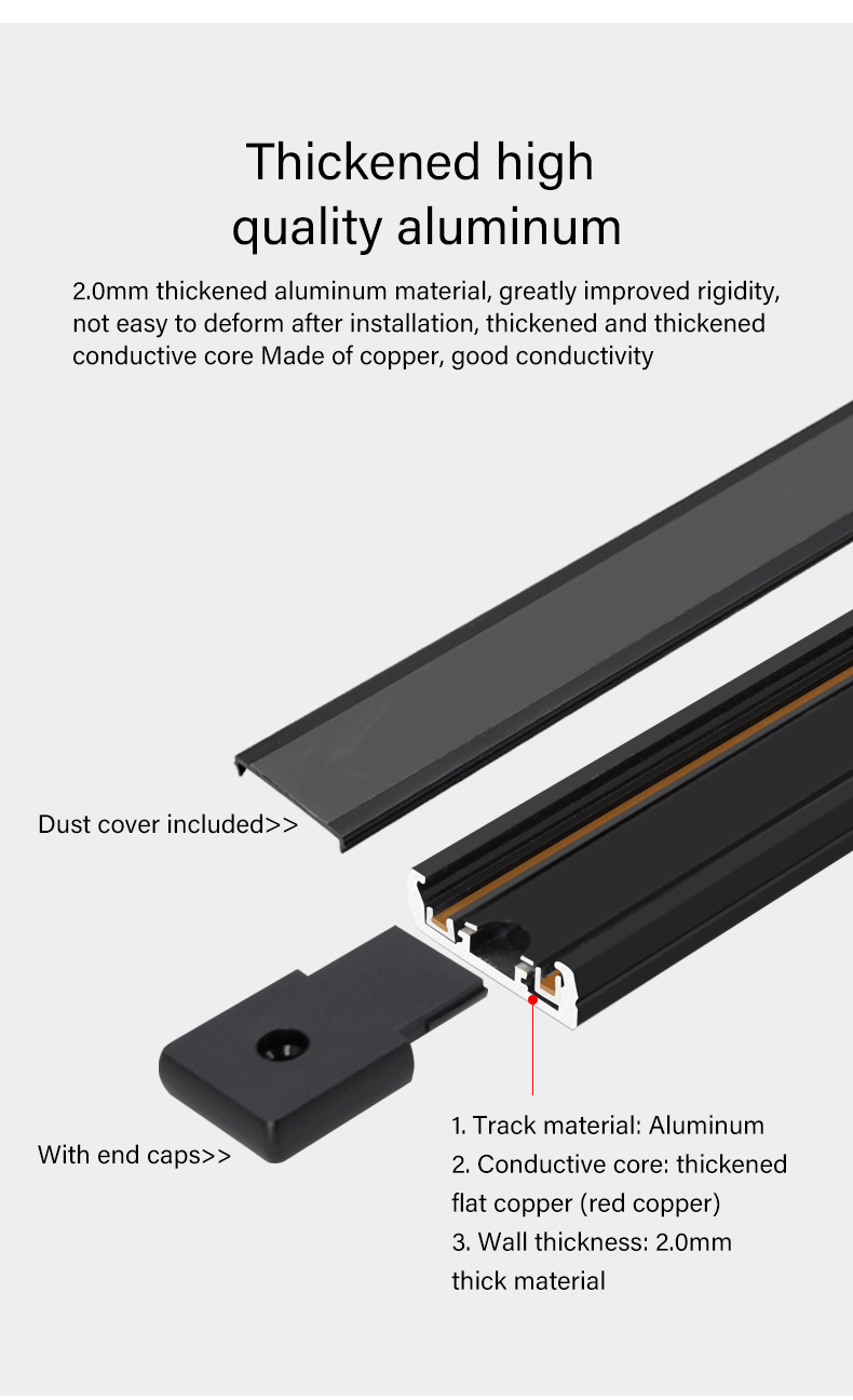 Ultra-Thin Black & White Aluminum Surface Embedded Track Light Rail TBS700
