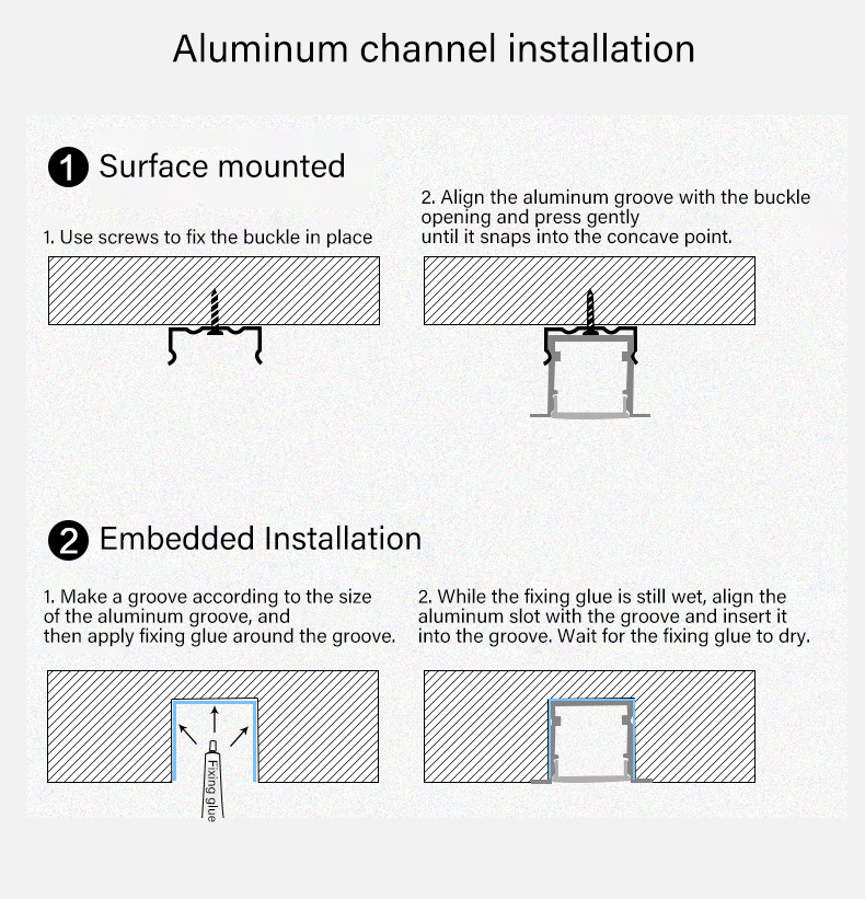 LED Strip Adjustable Length Aluminum Channel System 6000 Series Alloy Frosted Diffuser Anodized Surface for Cabinets Ceiling